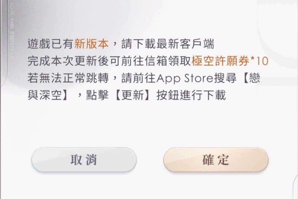 *版本發布的時間可能會存在1-2小時的延遲,如未出現彈出式視窗還請耐心等待,獵人也可自行前往App Store進入【戀與深空】頁面查看版本發布情況。
